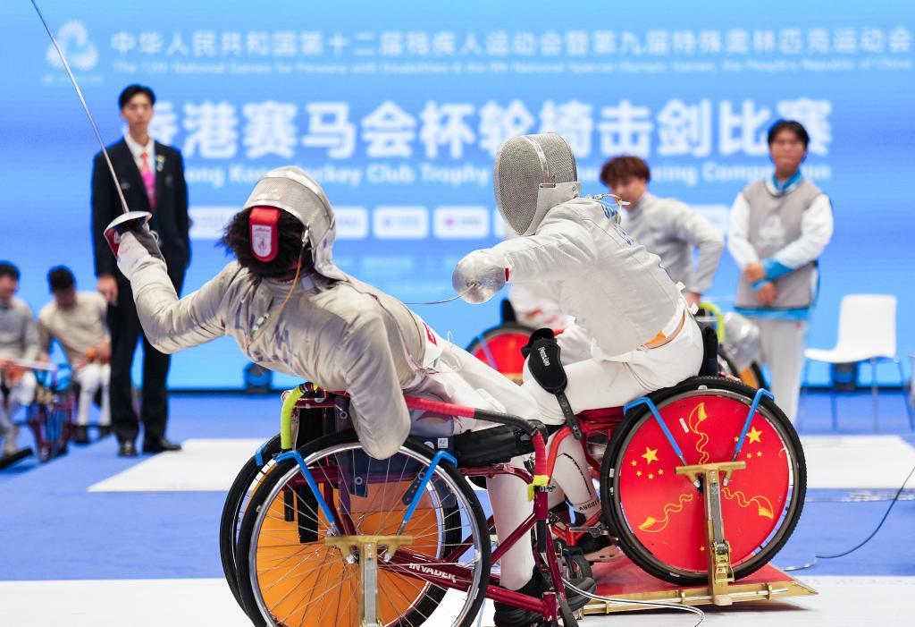 12月10日,全国第十二届残疾人运动会轮椅击剑项目比赛在香港举行。新华社记者 侯俊 摄